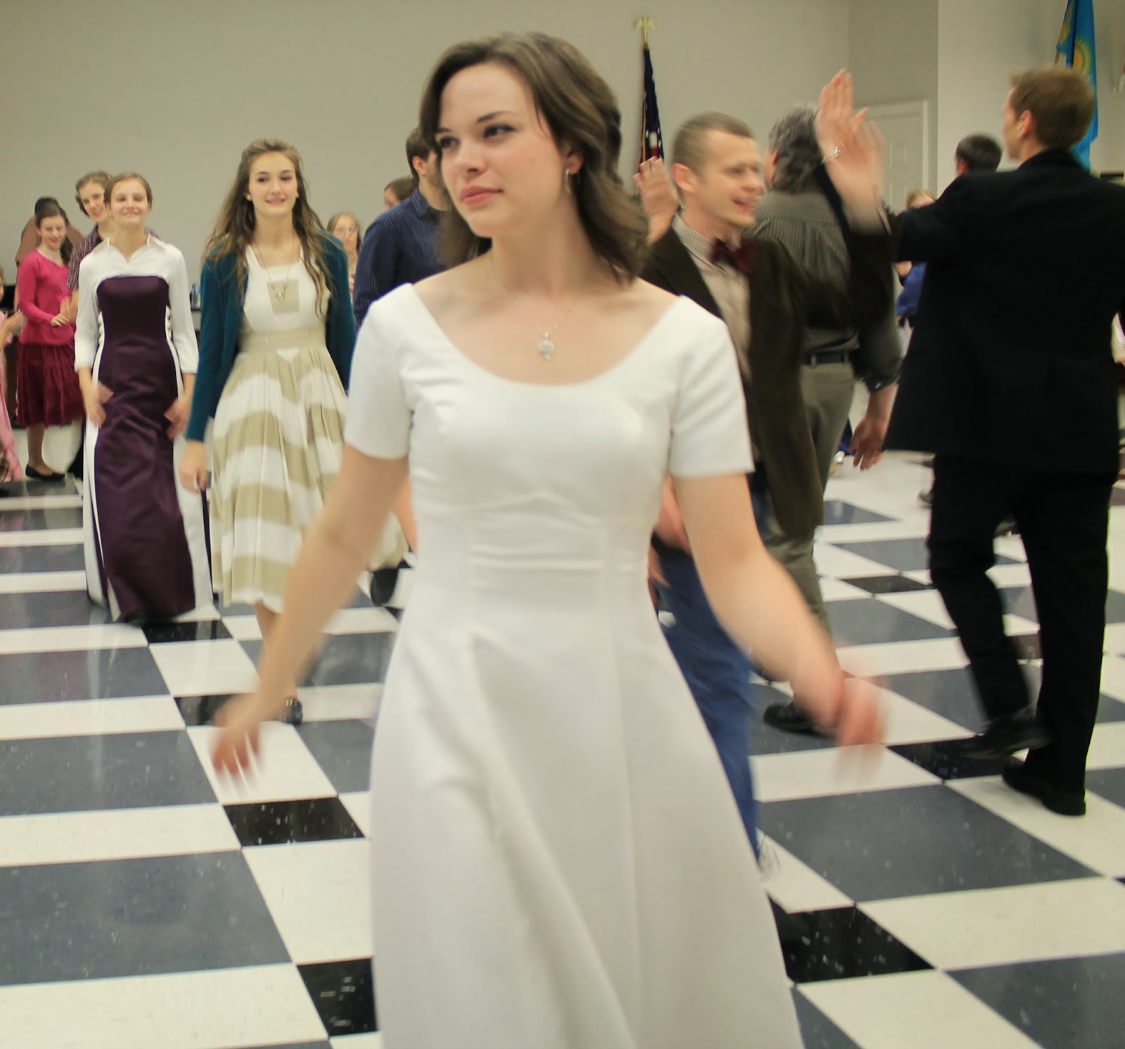Last night we went to a dance in Bluefield, VA. It was lots of fun, but I'm exhausted this morning. I worked four hours at the cafe yesterday and only sat down one time; it was very busy and chaotically fun. I'm enjoying work a LOT. Its busy, fast, and I burned my thumb. (As a friend put it, "Hey, it had to happen sometime.") I got off work at 4:04 pm, rushed home, changed, and then left. From 6:15 until 10:09, I danced all dances except for three. Twas a lot of fun, though my feet disagree strongly. I had another friend ask me what the highlight of my evening was. At the time I couldn't think of anything, but I have now. My highlight was dancing with a little gentleman named Owen. He barely reaches my stomach, and has a cute smile, and I had the honour of dancing with him. There's pictures below.